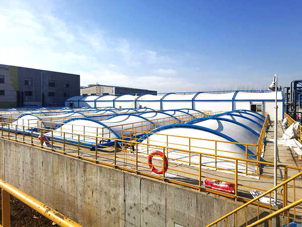 降低運營成本:雙膜密封罩可防止工業(yè)水曝氣池加蓋后,夏季水溫升高,危及微生物生存環(huán)境;亦可用于市政污水冬季保溫,降低水處理費用。
